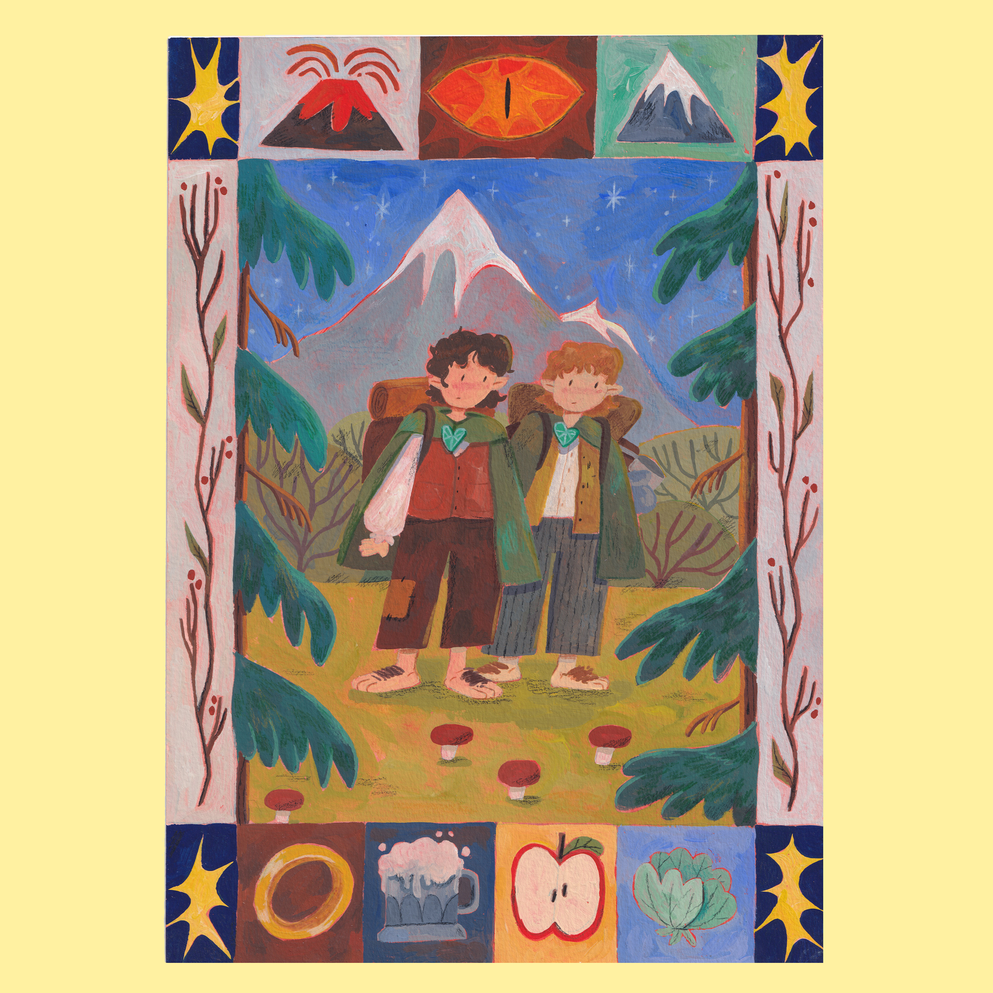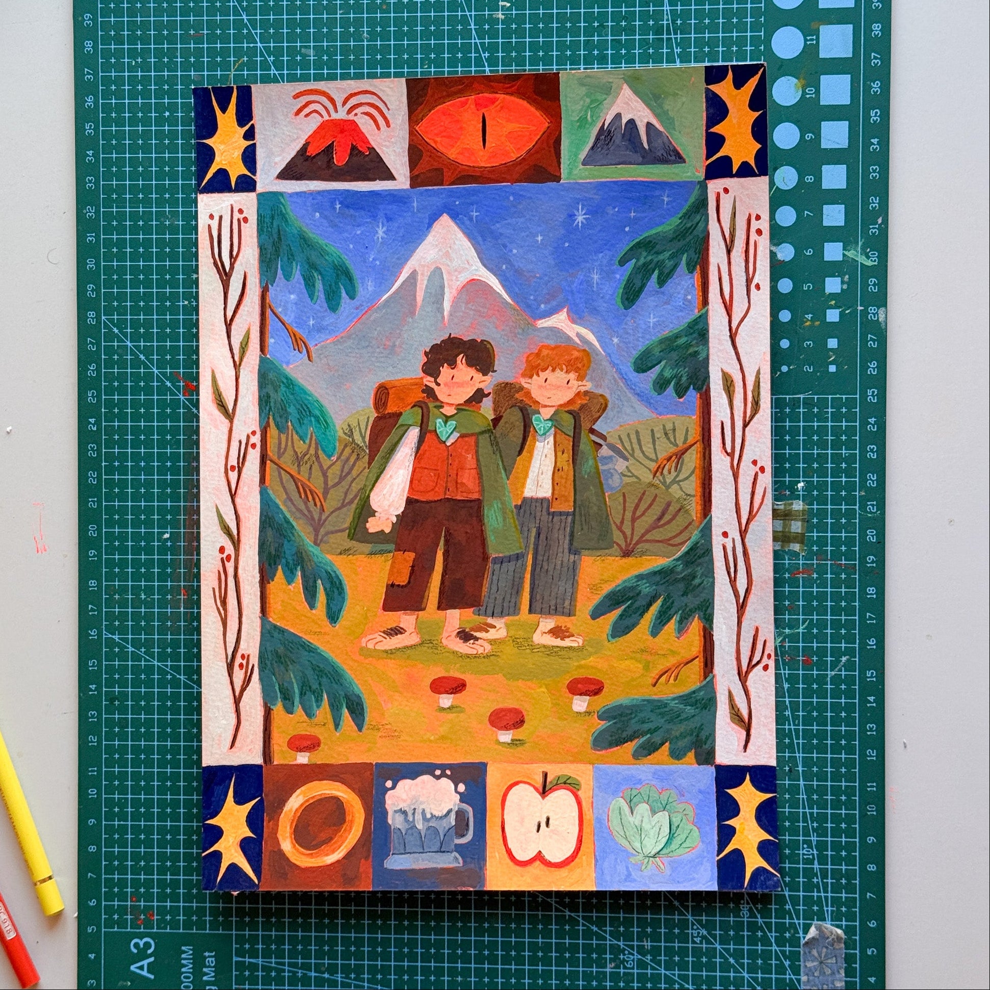 Acryla gouache and coloured pencil on 300 gsm watercolour paper.